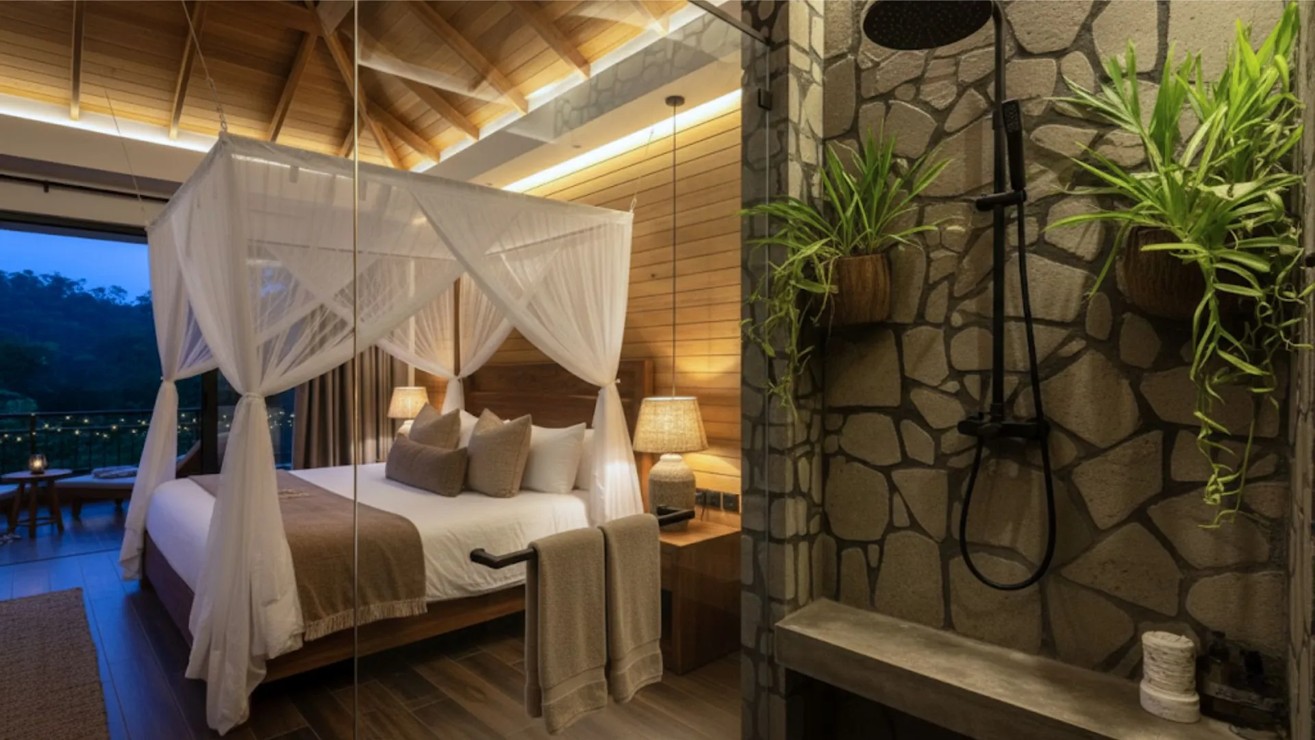 Aa luxurious and spacious accommodation option for hotel guests. This suite is designed with a garden theme, and features a private patio with outdoor seating. The suite also includes a king-sized bed.